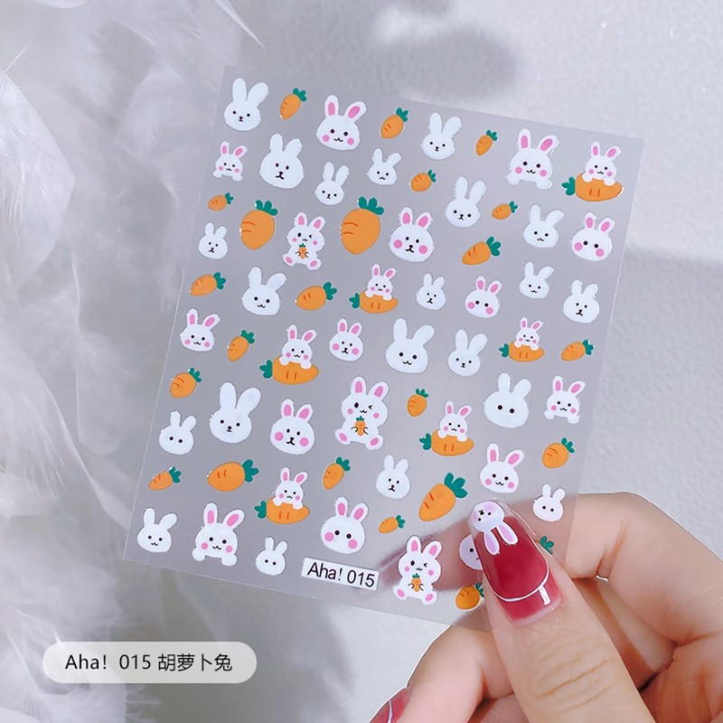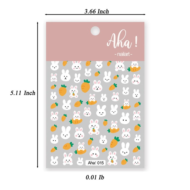 - 【What you will get】: You will get 2 sheets identical self-adhesive Carrot Bunny nail sticker decals, sticker size: 5.11 inch X 3.66 inch. They have separate packaging, so you can easily store them for reuse after using.