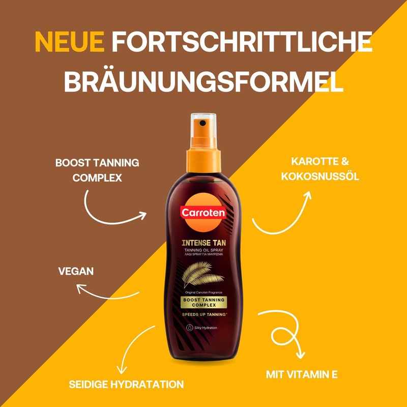 - TIEFE & MAKELLOSE BR?UNE: Das klassische Intensiv-Br?unungs?l ist meisterhaft gemischt, um eine schnelle, herrliche, natrliche Br?une zu erzielen.