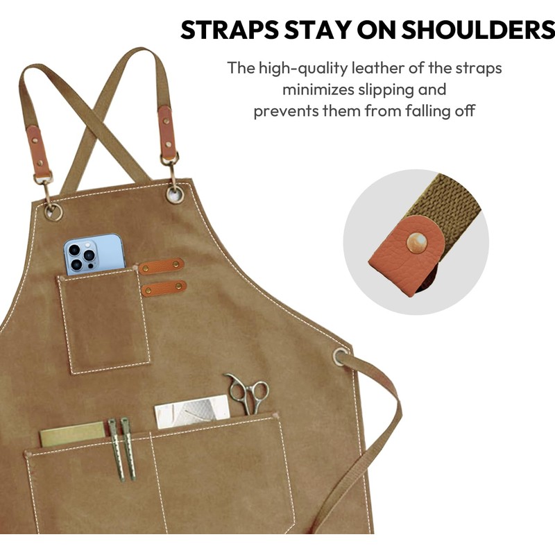 carrotez Cotton Cross Back Adjustable Apron [3rd Generation], Barber apron, Cotton Canvas Cross Back Adjustable Apron with Pockets, Adjustable Strap and Large Pockets,Canvas, M-XXL- Cappuccino