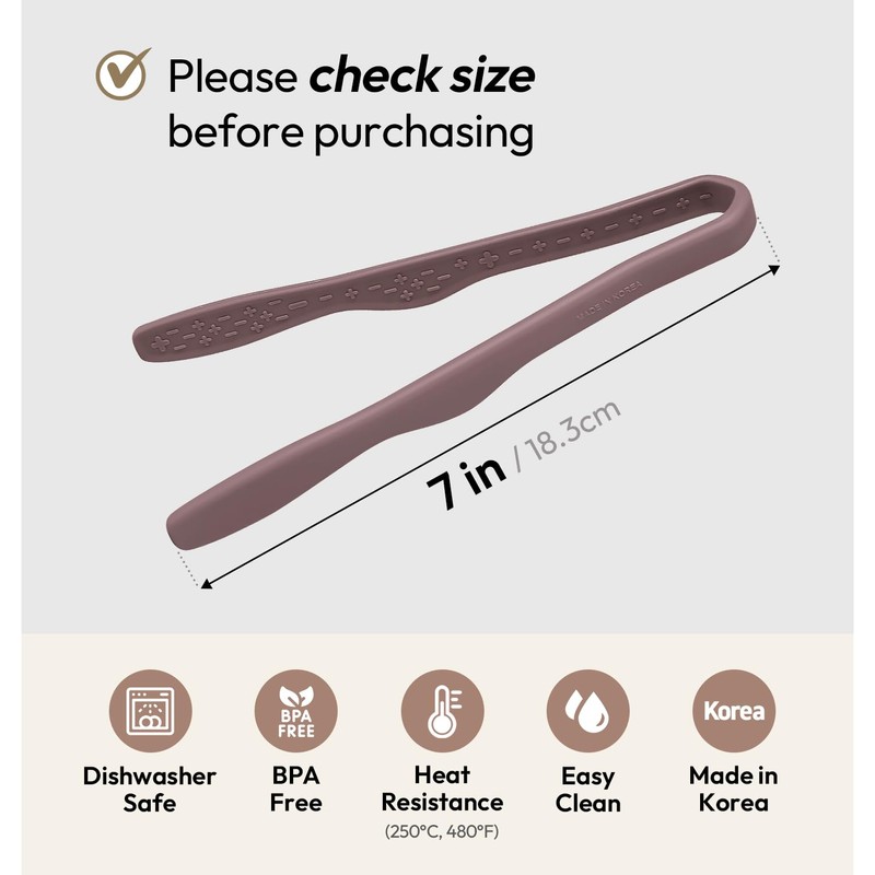 Mini Silicone Toaster Tongs Size:7’’ Material: Premium Silicone Mini Size: Please note the compact 7-inch size Premium Mini Tongs 100% Made in Korea.