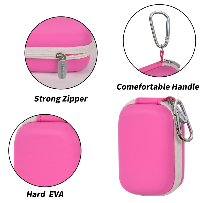 Carrying Case for Noxgear 39g Wearable Bluetooth Clip Speaker, Magnetic Clip-On Wireless Portable Speakers Mini Travel Storage Holder Box with Pocket for Cables, Carabiner-Bag Only (Pink)