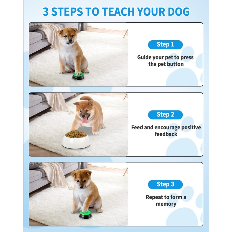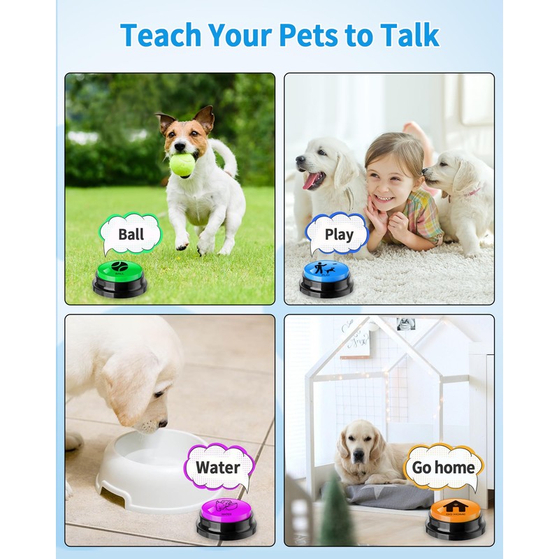 - 🐾【Pet Training Buzzer】These recordable buttons help you realize the idea of communicating easily with your dog, it is recommended to start with simple daily activities, such as walking, eating, drinking water, going to the toilet, entertainment, etc., and you can Record the corresponding sounds for the dog to cooperate with the training; please give the dog a little more patience.