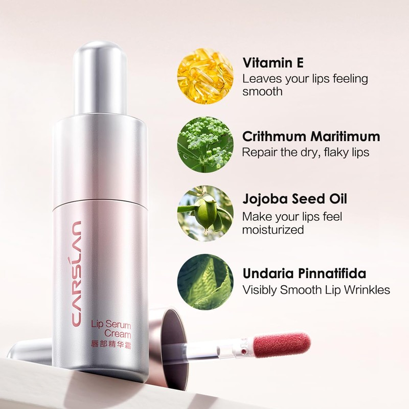 CARSLAN Hydrating Lip Serum Cream, Longlasting Moisturizing, Lightweight Lip Gloss, Semi-Matte Lipstick with Vitamin E, Crithmum Maritimum Essential oil, C206