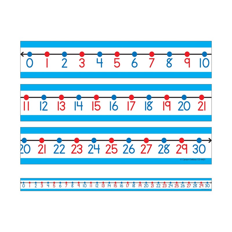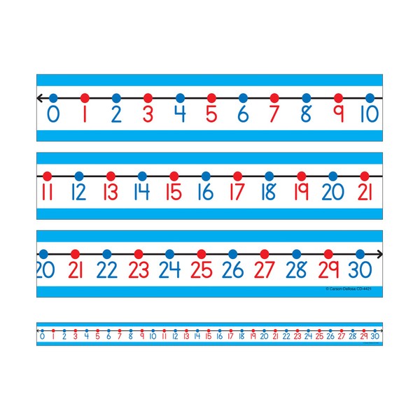 Carson Dellosa 30-Piece Number Line Set, 22" x 1.5" Dry Erase Hands-on Learning Tools With Color-Coded Numbers 0 Through 30, Math Classroom Must Haves