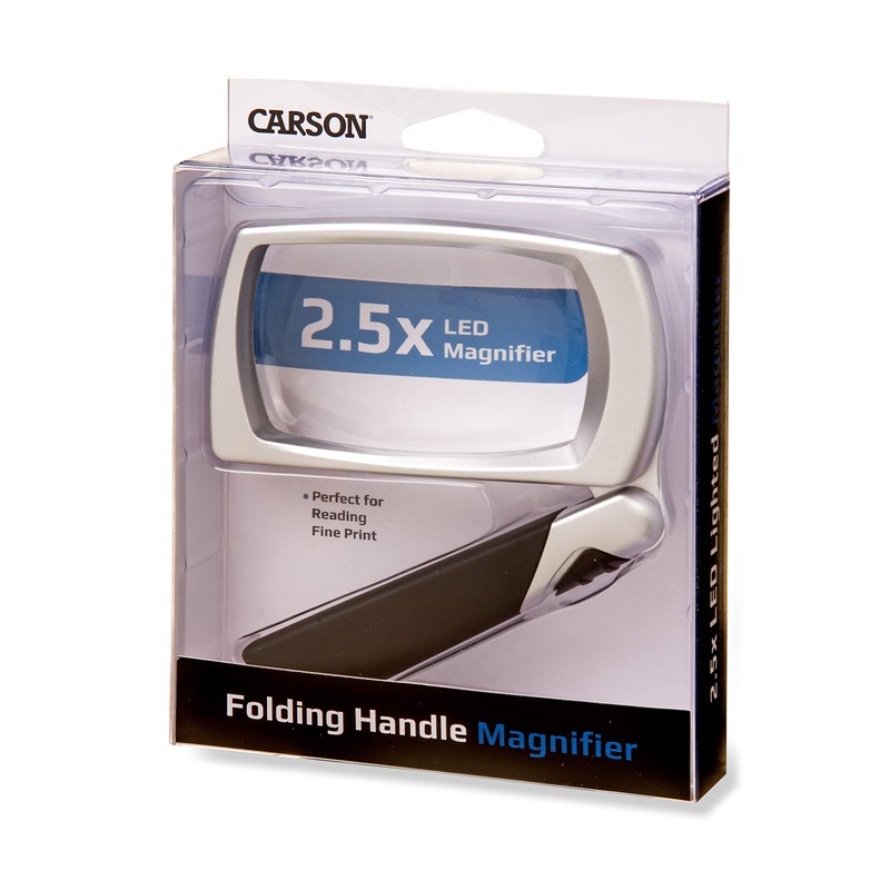 Carson LED Lighted 2.5X Power Rectangular Magnifier with Folding Collapsible Handle (MJ-30)