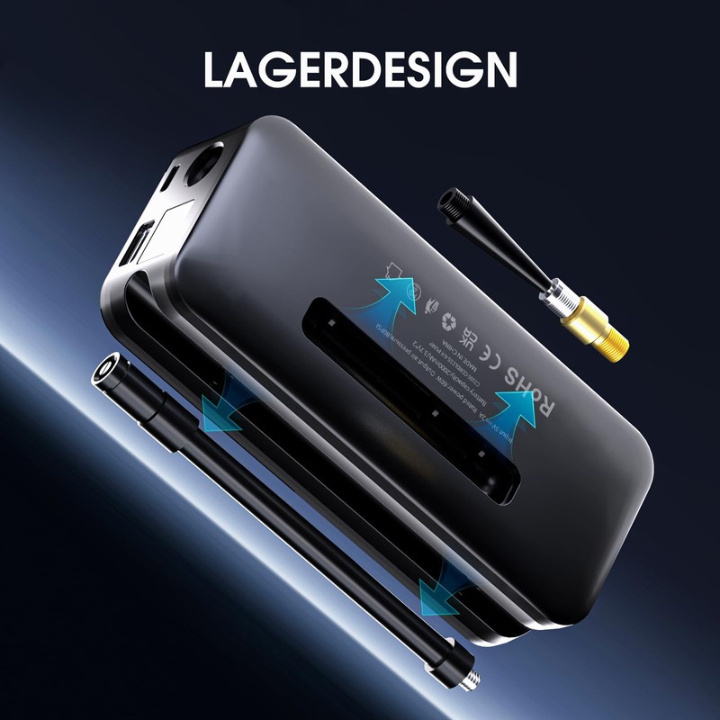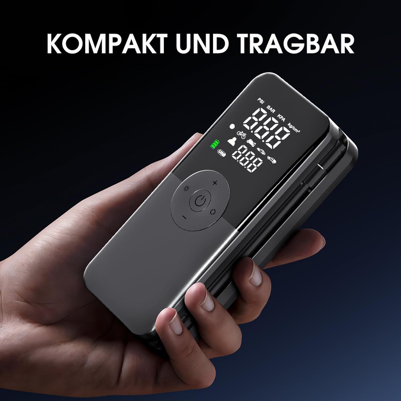 - 【MEHR ALS NUR EINE AUTOPUMPE】: Sie ist nicht nur eine Autopumpe, sondern auch mit LED-Leuchten (SOS, normal) ausgestattet, die das Aufpumpen im Dunkeln erleichtern. Die Autopumpe kann auch als Notstromversorgung für Ihr Mobiltelefon oder andere digitale Geräte dienen. Darüber hinaus ermöglicht das kompakte Design auf der Rückseite die einfache Aufbewahrung von aufblasbarem Zubehör.