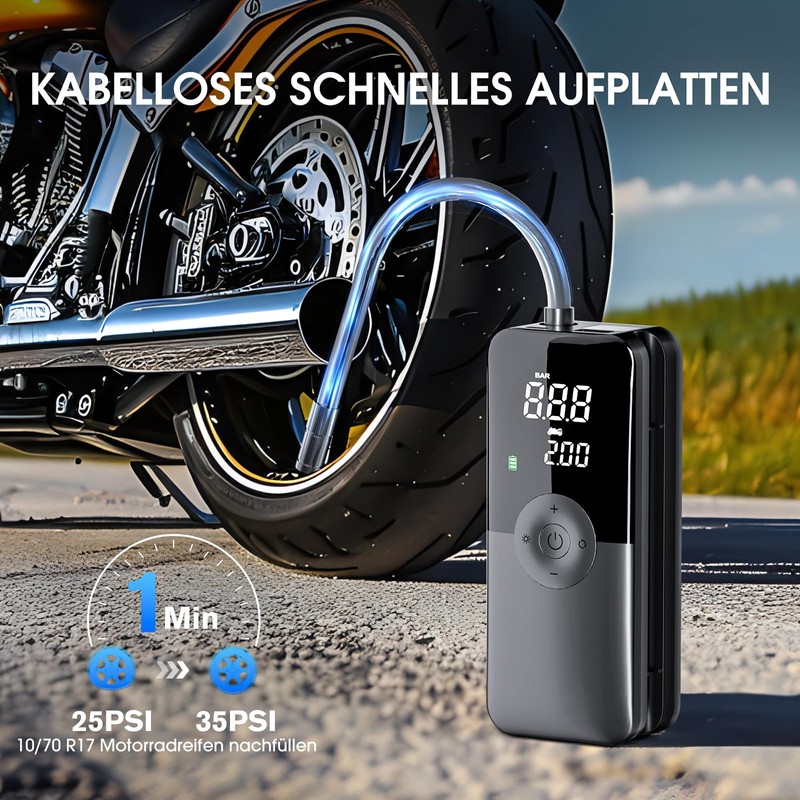 - 【TRAGBARES UND KABELLOSES DESIGN】: Die tragbarer elektrische luftpumpe von CARSUN verfügt über ein kompaktes, kabelloses Design, mit dem Sie sie problemlos überall hin mitnehmen können. Es stehen zwei Druckeinheiten zur Auswahl (PSI, BAR). Mit mehreren mitgelieferten Aufsätzen ist der kabellose Reifenfüller CARSUN ein Muss für Autofahrer, Radfahrer und Abenteurer.