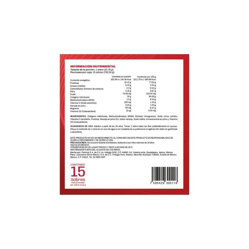 Cartaction Suplemento Alimenticio Con 15 Sobres Sin Sabor