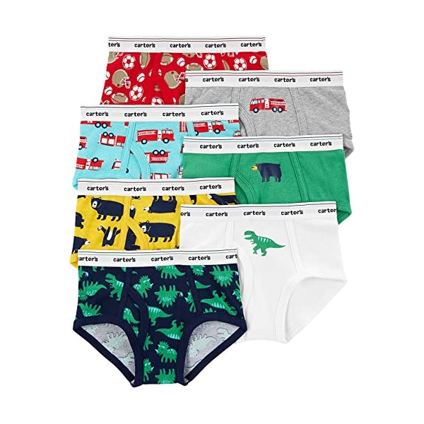Carter's Boy`s 7 Pack Briefs, Dinosaur(3h739410)/White, 2-3T