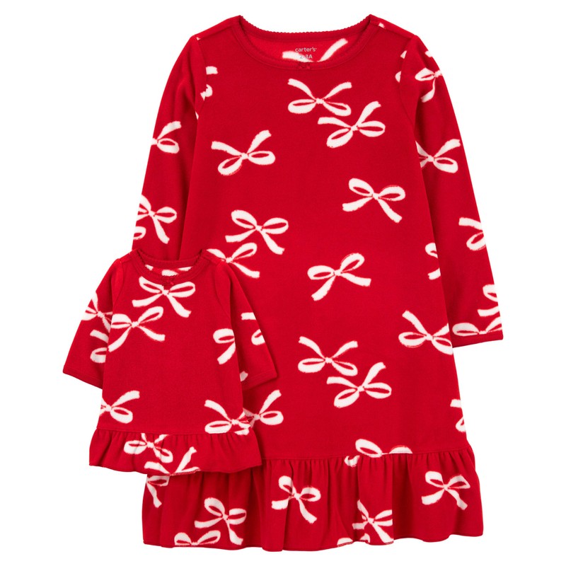 Carter's Girls' 4-14 Fleece Doll Nightgown Set, bow/red, 810