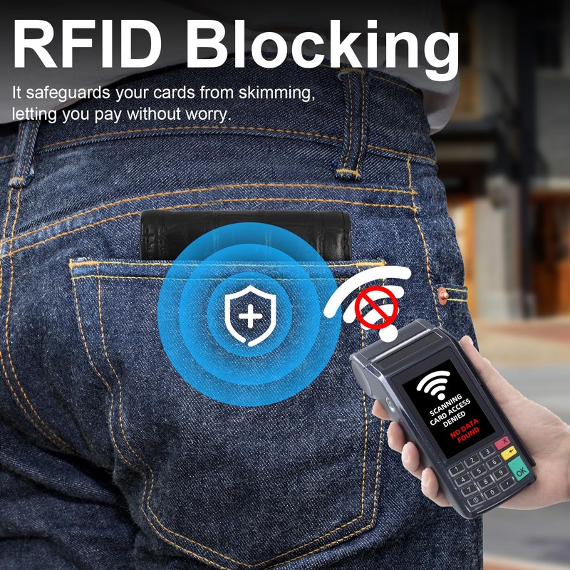 - Tecnología RFID: Esta cartera de piel para hombre cuenta con una tecnología RFID de avanzada, la cual proporciona una capa de protección contra el escaneo no autorizado de tarjetas de crédito, débito y otros documentos con chips emisores de señal.