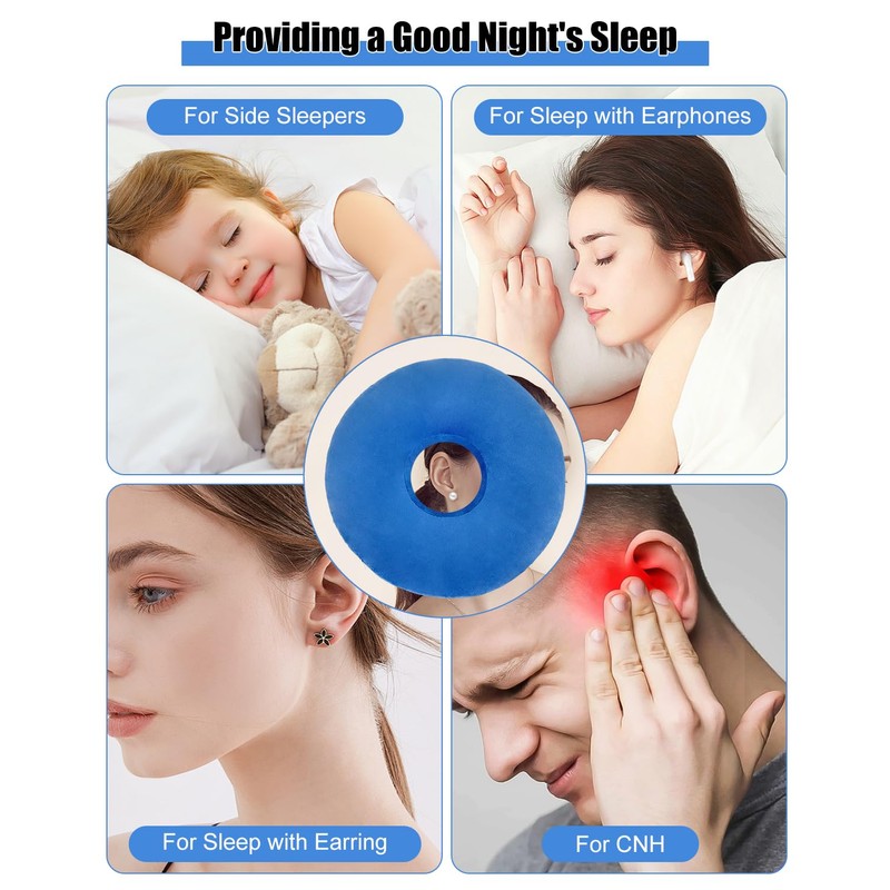 - Multifunctional ear cushion: Our donut cushion is designed to be easy to wear and is therefore perfect for the office, train or plane. It is specially designed to protect your ears and ensure a good night's sleep. Ideal for CNH patients, side sleepers and those who have just pierced their ears or sleep with headphones/earrings/hearing aids.
