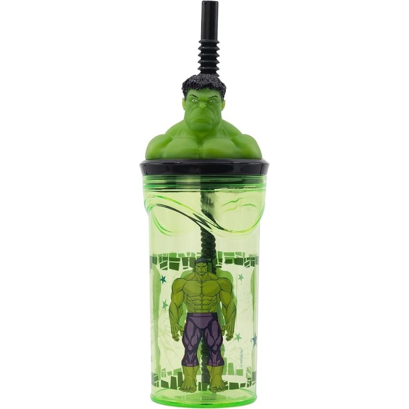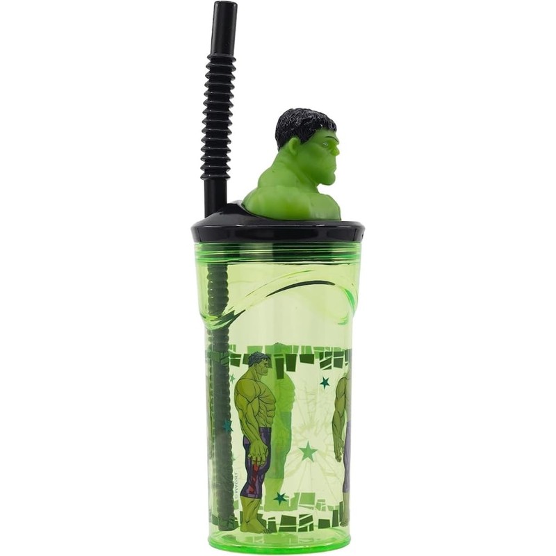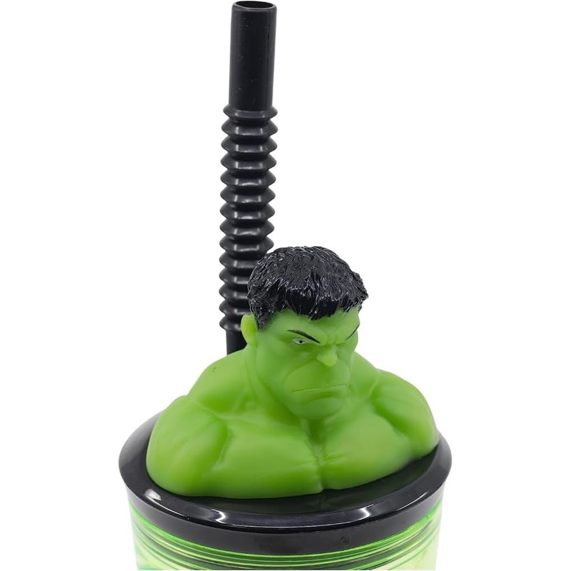 CARTOON 3D Character Drinking Straw Cup Reusable Plastic BPA Free Capacity 360ml (Hulk (1))