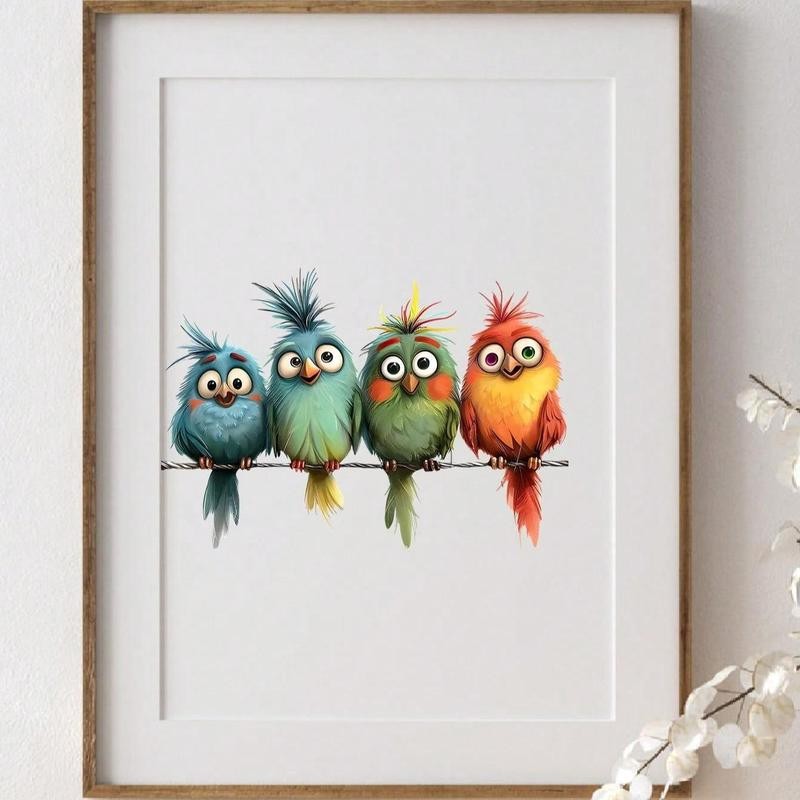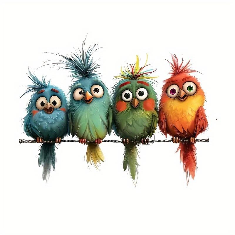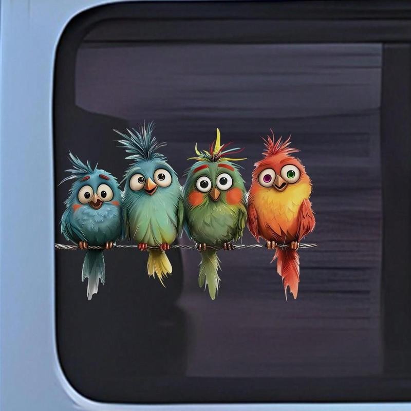 Cartoon Bird Pattern Window Sticker, 4 Counts/set Cute Bird Pattern Vinyl Sticker, Removable Window Decal, Home Decor for Living Room Bedroom