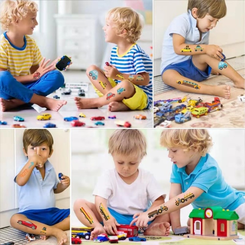 - Suitable Occasion:These vehicles tattoos stickers are perfect for kids birthday party supplies, party favors, party decorations, Easter basket stuffers, kids light up toys, etc. You can apply them to your body or some smooth objects, such as glass, tile, water bottle, plastic, phone case and so on. The road sign temporary tattoos are waterproof. You don't have to worry about sweating, bathing, swimming, and other activities will wash it off