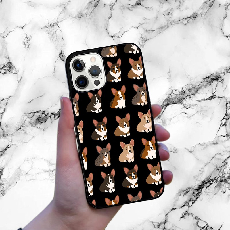 Cartoon Corgi on Black Background Dog Lover Cute Pattern Case - Compatible with 14 13 12 11 X XS XR 8 7 6 6s Plus Mini Pro Max - (14)