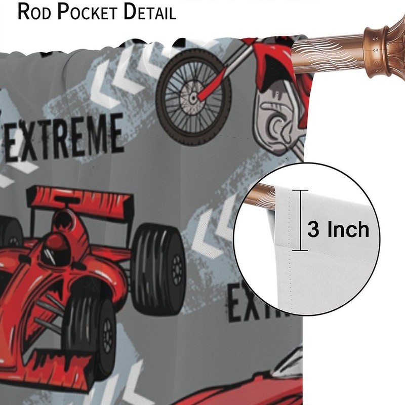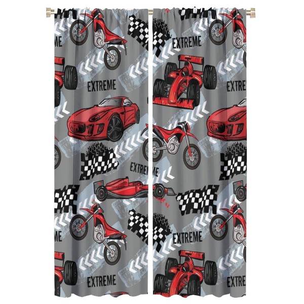 Cartoon Speed Racer Curtains, Seamless Pattern Sports Car Motorcycle Automobile Race for Boys, Thermal Insulation Blackout Rod Pocket Window Drapes for Living Room Bedroom Bathroom 42x63in