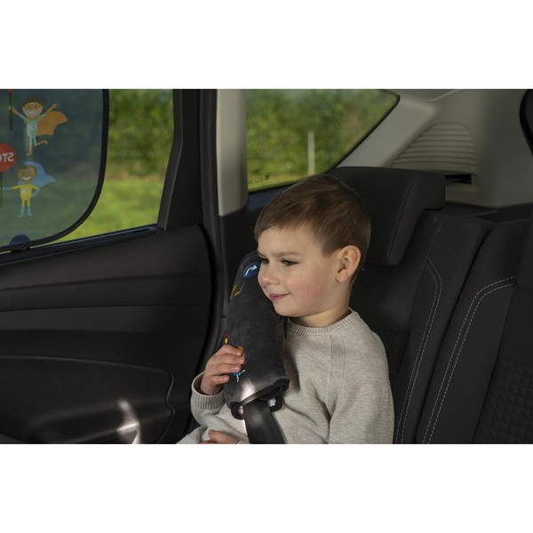 cartrend HERO Seat Belt Cushion Protects Against Injury, Large and Comfortable, Colourful Design for Children, 1 Piece, Grey