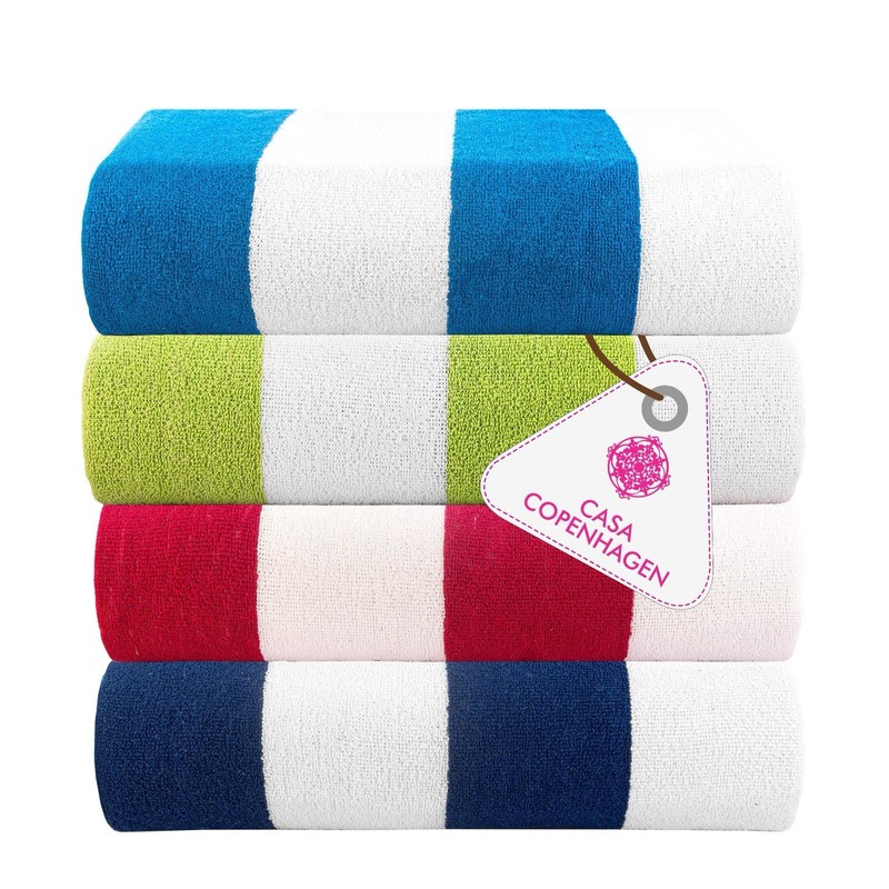 CASA COPENHAGEN Cabana Beach Towel Designed in Denmark Rough and Tough, Quick Dry, Pool, Bath & Shower 30x60 inches 4 Pieces Cotton Beach Bath Towels Set - Turquoise, Green, Pink, Royal Blue