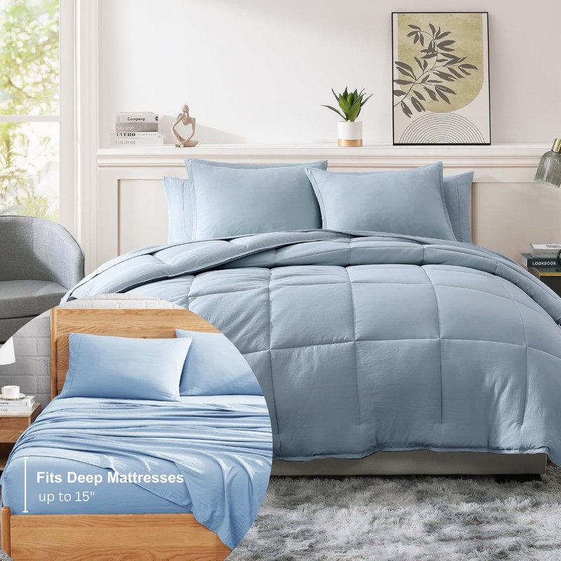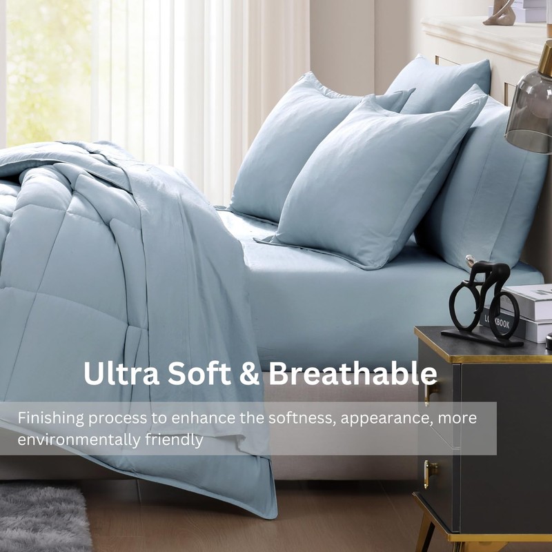 - Timeless Luxury & Comfort: Our Pre-Washed Full Comforter Set with Sheets can suit any home décor & will add to the elegance of any home aesthetic. Indulge in the exceptional softness of our fine brushed Pre-Washed 100% Microfiber sheets, pillowcases & shams. This set is specially made for you to have a comfortable and restful sleep.