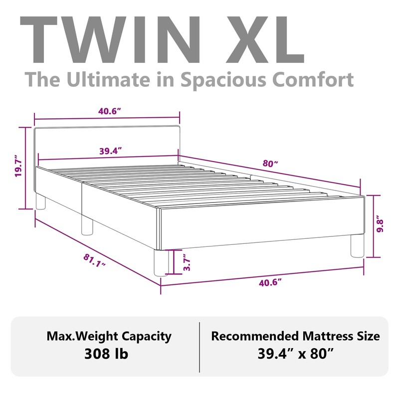 Casafoyer Bed Frame with Headboard Dark Gray 39.4"x79.9" Twin XL Velvet