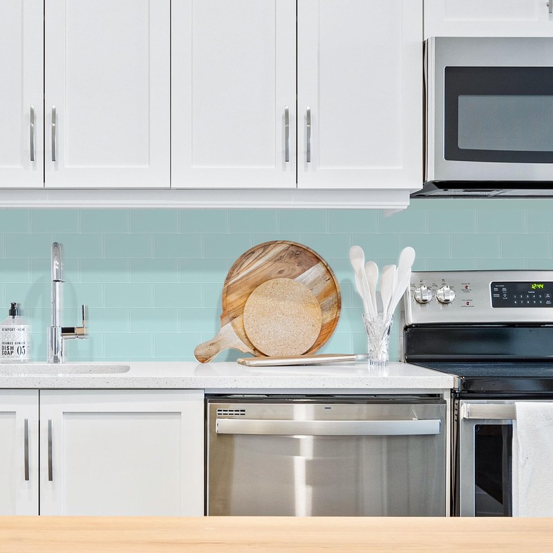 - Strong Adhesion and Easy Maintenance: our peel and stick glass tiles offer strong adhesion once applied and are easy to clean and maintain with regular wiping—ideal for busy kitchens and bathrooms.