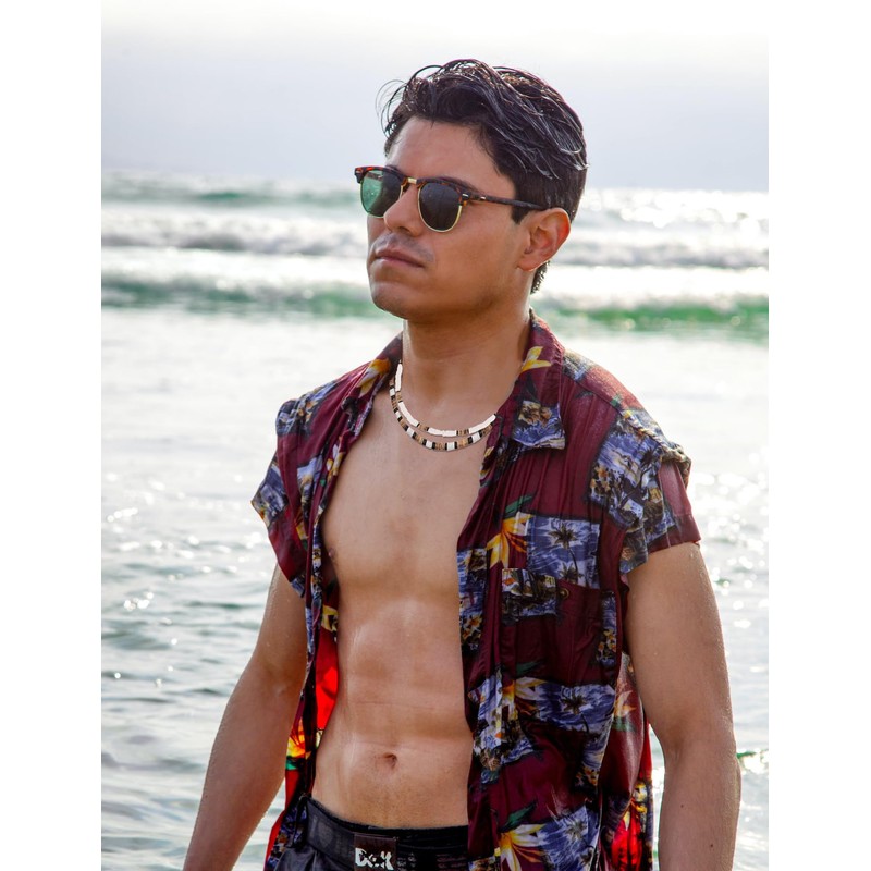 CASDAN 6 Pcs Surfer Puka Shell Necklace - Men's Hawaiian Seashell Bead Choker with Coconut Beads
