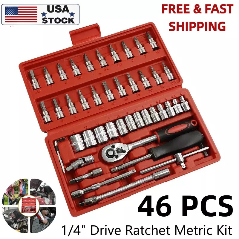 Case 46Pcs Spanner Socket Ratchet Wrench Set 1/4"Drive Car Repair Tool Kit with Case-