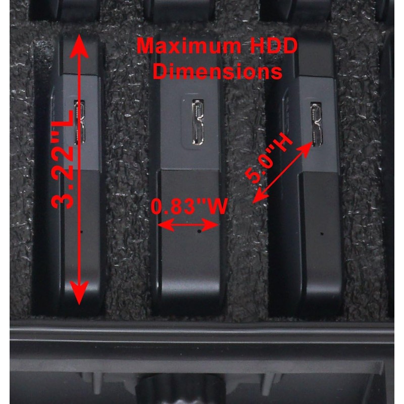 • [Custom Foam Interior] The shock absorbing foam is a high grade closed cell polyethylene that will last a lifetime, and is PRE-CUT to perfectly fit most External HDDs. Protect your Hard Drives while keeping everything well organized for storage, travel & shipping. The pre-cut custom foam fits your Hard Drives out of the box! No messy, irreversible, time consuming plucking required!