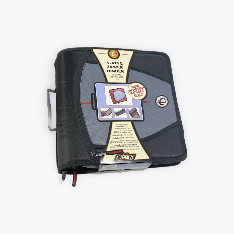 Case-it King Sized Zip Tab 3" 3-Ring Zipper Binder Black and Gray (D-145 BLK)