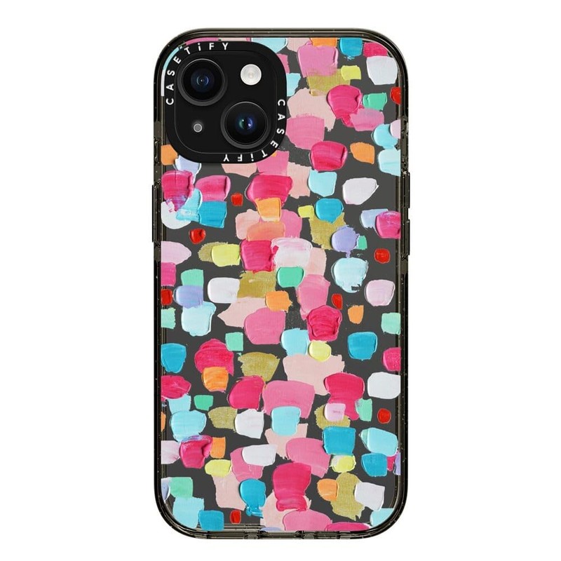 CASETiFY Impact Case [4X Military Grade Drop Tested / 8.2ft Drop Protection] - Paint Prints - Magenta Confetti - Clear Black