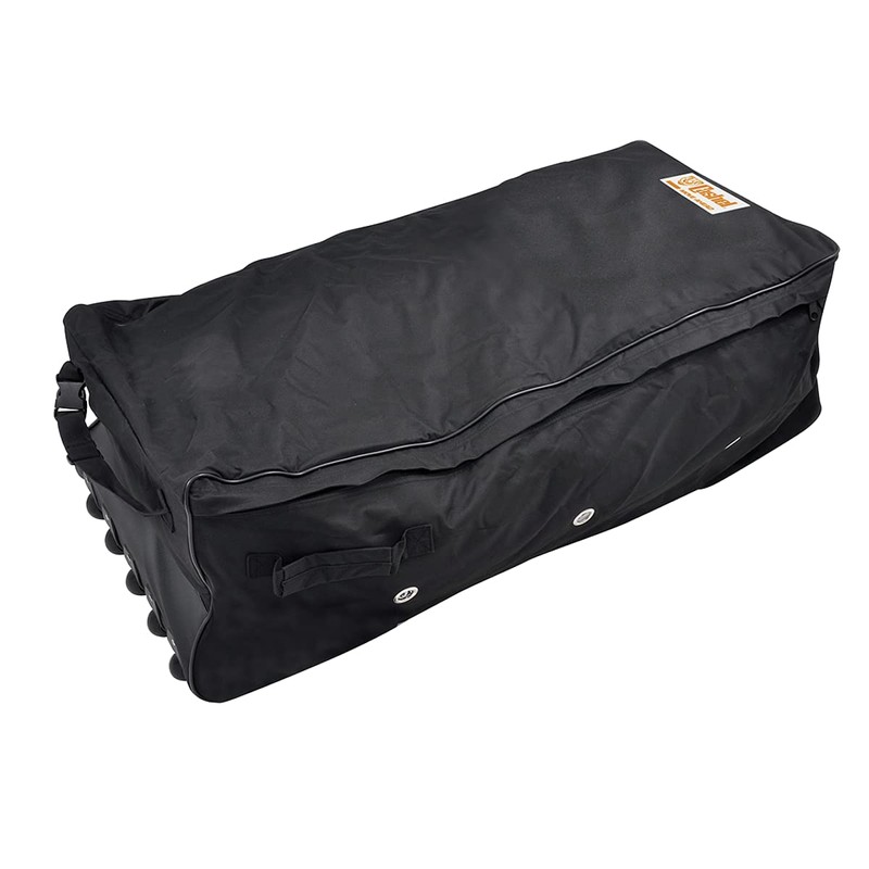 Cashel Rolling Hay Bale Bag Made of tough, water-resistant nylon, this rolling hay bale bag features a heavy-duty zipper on three sides for easy loading, heavy-duty plastic wheels and a nylon handle to provide easy transport, and convenient side handles for loading into your truck. Features: Made of tough, water-resistant nylon Heavy-duty zipper on three sides Heavy-duty plastic wheels Nylon handle for easy transport Convenient side handles Item Specifications: Color: Black Material: Nylon Sizing: Regular: 44" x 18" x 15" / Holds 2 Strand Bales Large: 50" x 24" x 16" / Holds 3 Strand Bales