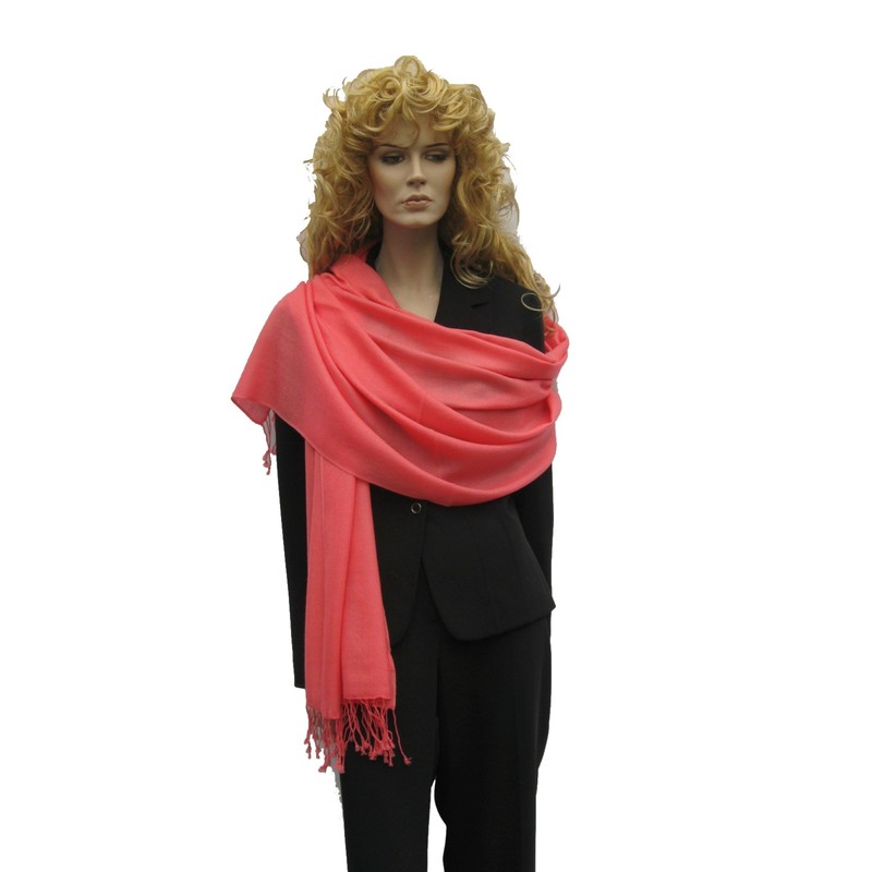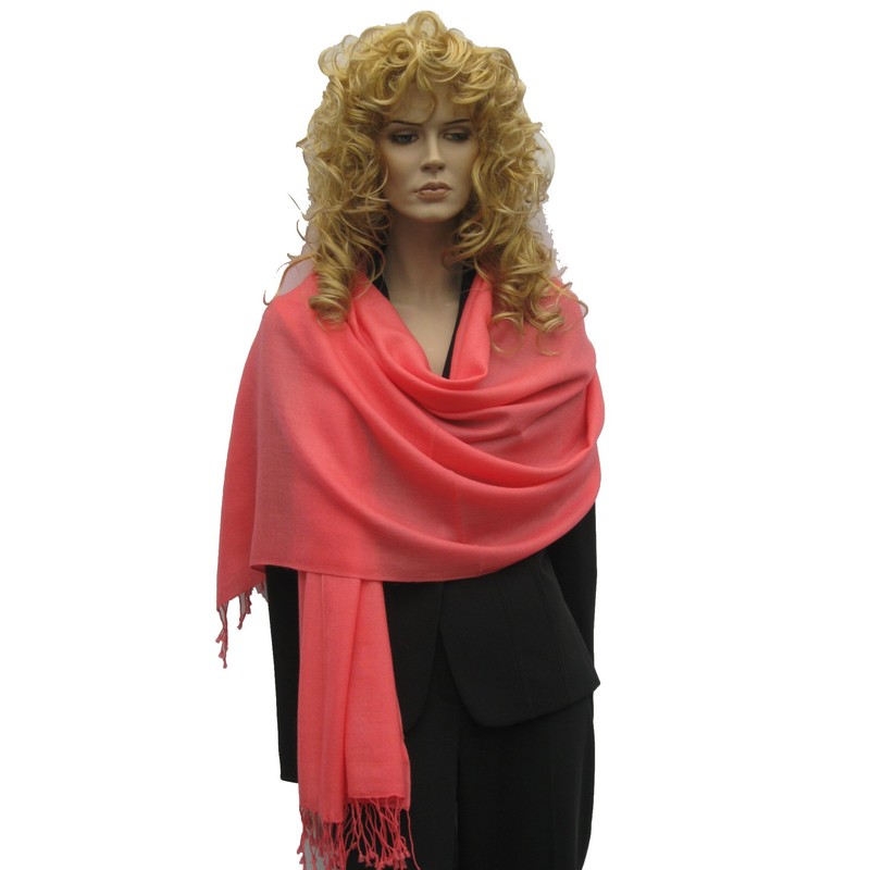 Cashmere Pashmina Group: Solid Pashmina Shawl, Scarf, Wrap & Stole(Regular Size) (DEEP Coral)