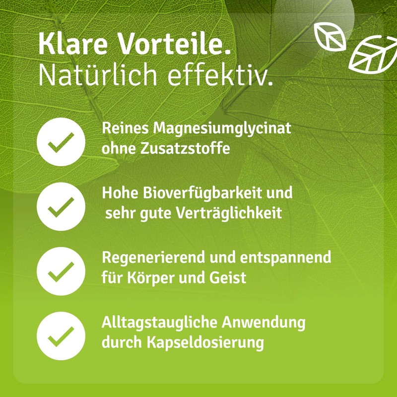 - MAGNESIUM GLYCINATE: Is particularly well tolerated and the combination of magnesium and the amino acid glycine ensures high biological availability.
