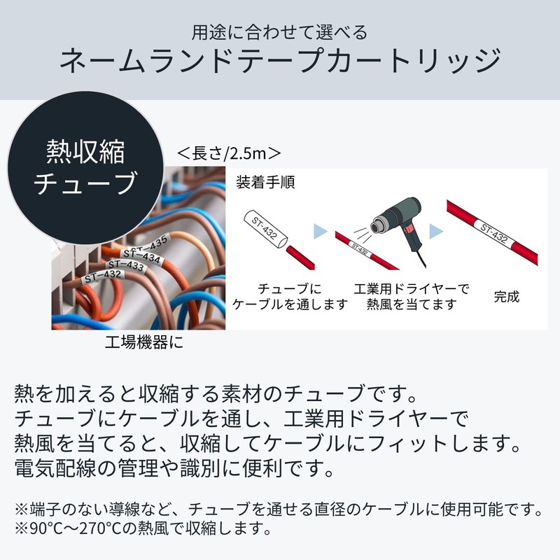 CASIO EZ-Label Printer XR-18HSWE Label Tape Heat Shrink Tube for Cable 5.0-11.0 mm 18 mm x 2.5 m Black on White