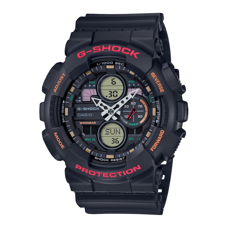 Casio G-Shock GA-140-1A4JF Men's Wristwatch, Black, multicolor (black / red), watch