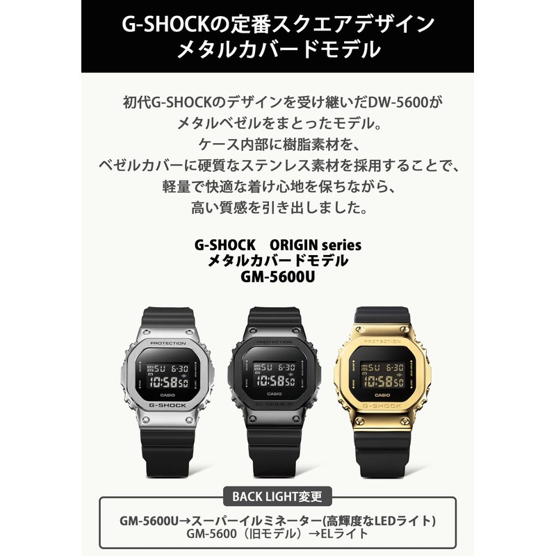 - From the G-SHOCK 5600 Series, the square design continues to evolve in pursuit of toughness, we introduced a model that uses metal materials and equipped with LED lights