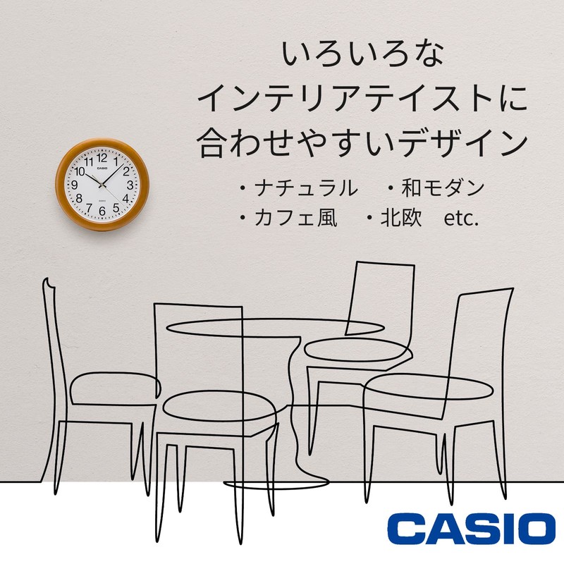 CASIO IQ-136-7JF Brown Analog Wood Grain Wall Clock, 11.6 inches (29.5 cm), Silent, Continuous Second Hand