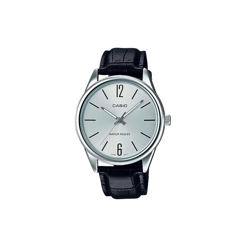 Casio #MTP-V005L-7B Men's Standard Analog Black Leather Band Silver Dial Watch