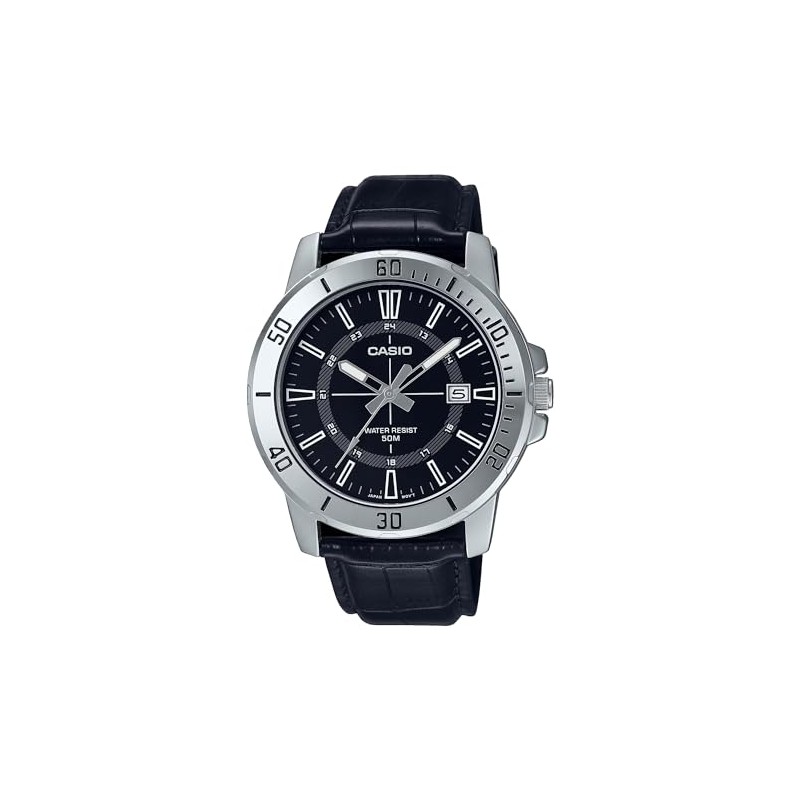 Casio MTP-VD01L-1CV Men's Enticer Leather Band 24 Hour Black Index Dial Casual Analog Sporty Watch
