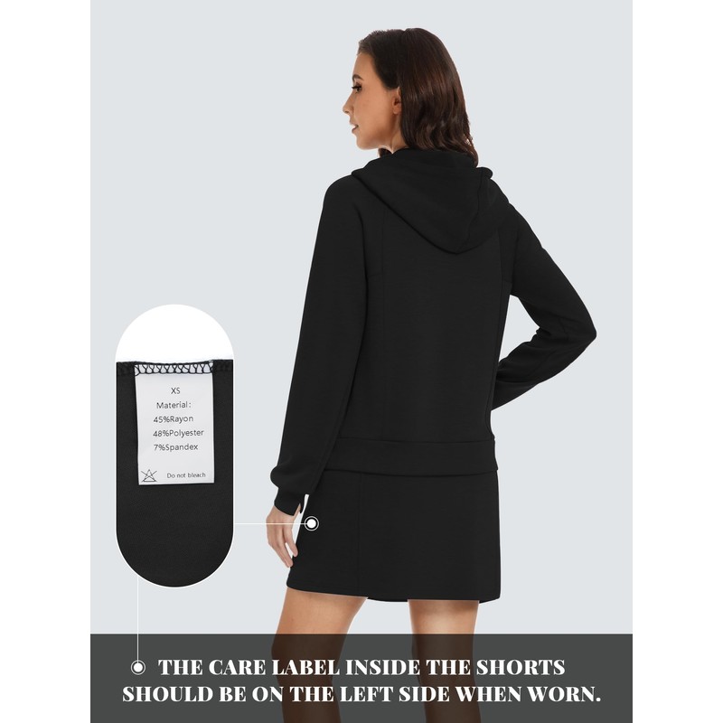 - Trendy & Sporty: This sweatsuits set for women features a full-zip hooded sweatshirt and a tennis skort for secure coverage. The pockets easily carry your items. Attention: The care label inside the shorts should be on the left when worn