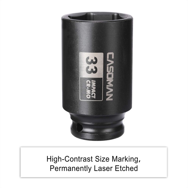 CASOMAN 1/2" Drive x 33 mm Deep 6 PT Impact Socket, CR-MO, 1/2-inch Drive 6 P...