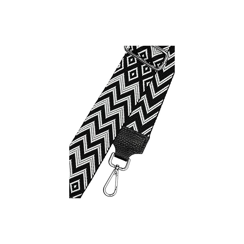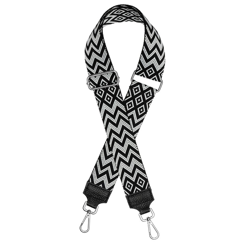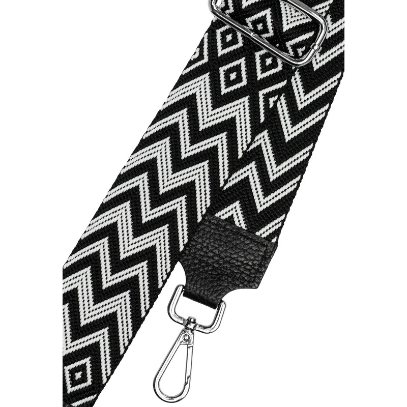 Caspar BSG02 Wide Leather/Textile Shoulder Strap with Silver Carabiner for Handbags, Black / White