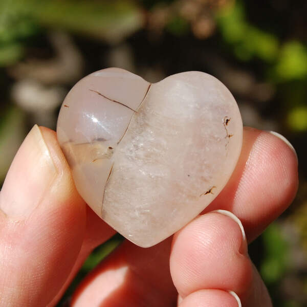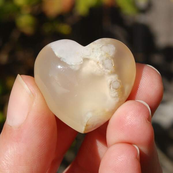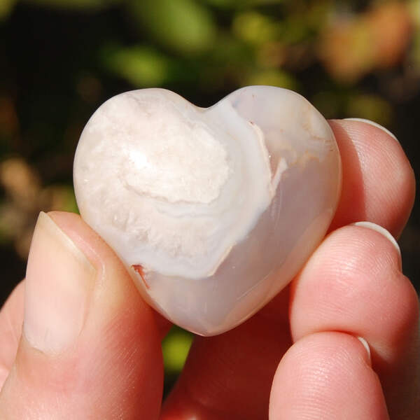This listing is for ONE intuitively selected Sakura Agate crystal heart. I have photographed several to illustrate variation.