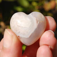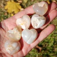 For your consideration are thedse beautiful polished Sakura Agate (aka Flower Agate) heart shaped crystal palm stones from Madagascar. The 'flowers' you see are inclusions of fossil coral suspended in Chalcedony. They measure approximately 30 millimeters wide (1.15 to 1.2 inches) and are sold by the piece.This listing is for ONE intuitively selected Sakura Agate crystal heart. I have photographed several to illustrate variation.Flower agate promotes the manifestation of your dreams and life's pursuits. It encourages one to take control of their life and live it to its fullest. It is a great stone for business owners hoping to expand their business or those starting a new business or venture in their life.Chakra: Root, HeartONE 30mm Sakura Flower Agate Crystal Heart