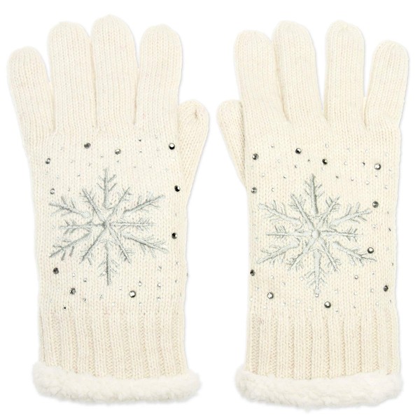 Caspar, GLV009, Women's Warm, Lined, Knitted Gloves with Embroidered Ice Crystal and Subtle Rhinestone -
