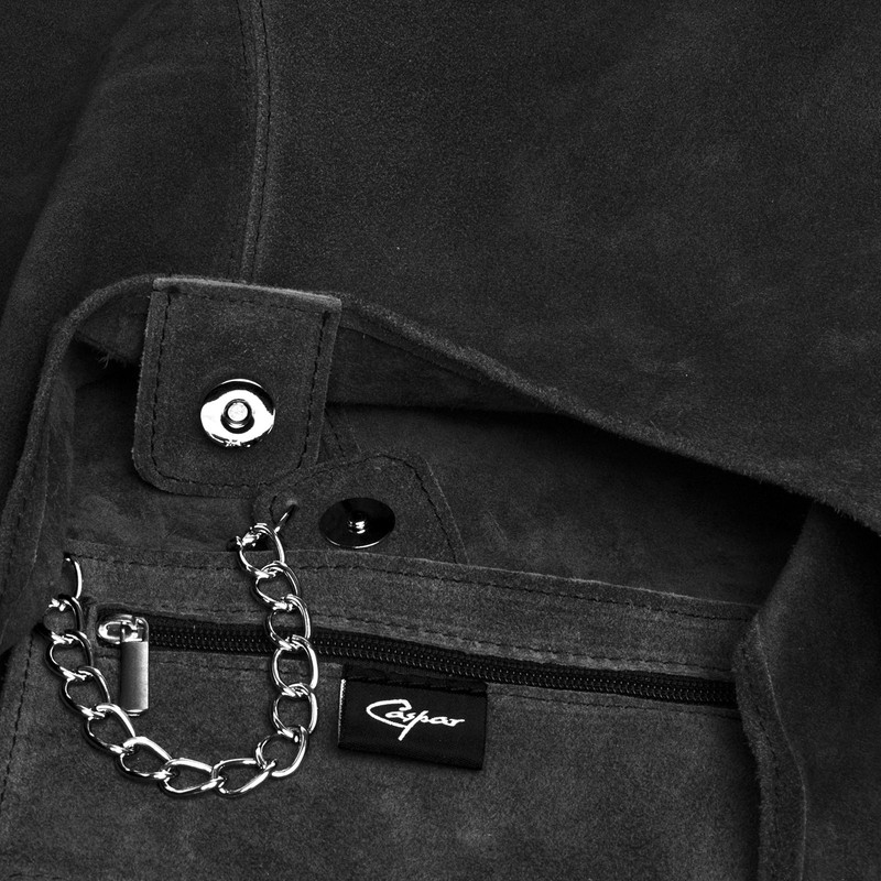 - Casual leather handbag / suede bag with large main compartment with plenty of space – also suitable for A4 folders / binders.