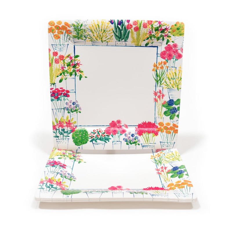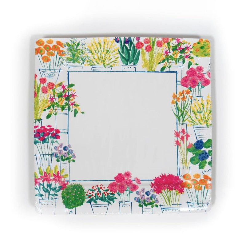 Caspari Flower Market Square Dinner Plates -8 Paper Plates per Pack, 2 PACKS