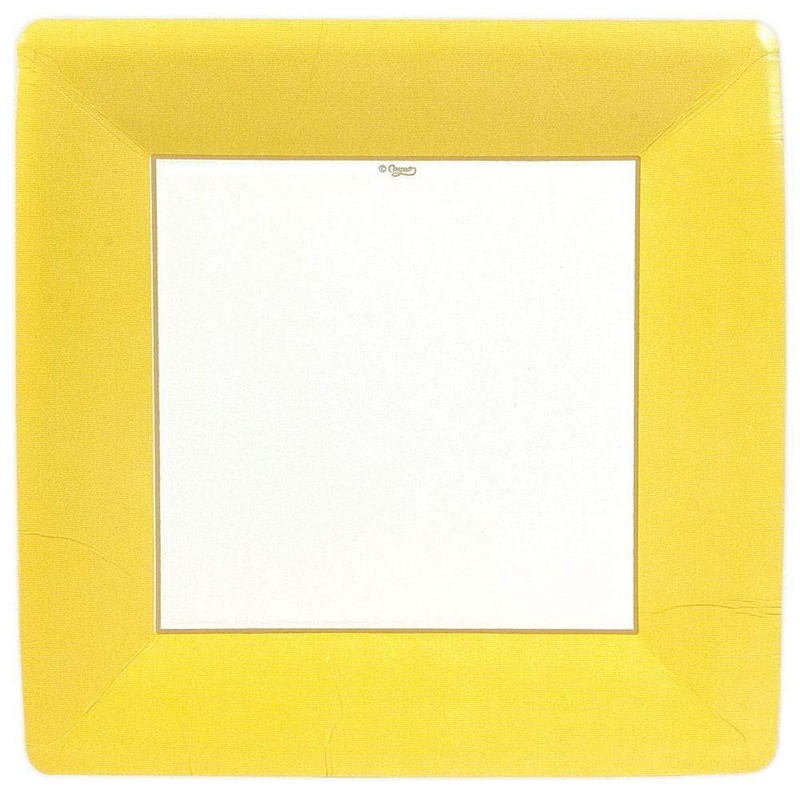 Caspari Grosgrain Square Paper Dinner Plates in Yellow - 16 Count