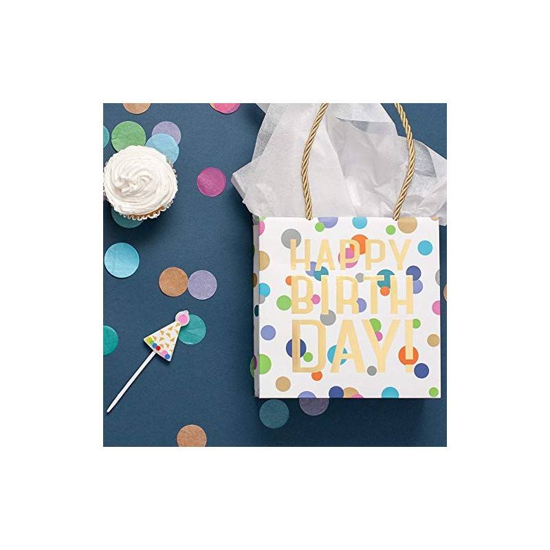 Caspari Happy Birthday Confetti Small Square Gift Bag - 1 Each